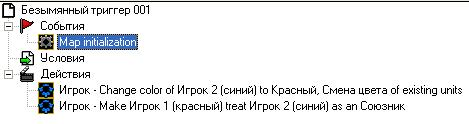 ПС: без понятия, почему триггер "make as Союзник" не работает как нужно. Он делает его союзником, он отображается у тебя как союзник, но его юниты твоих пинать начинают автоматом.