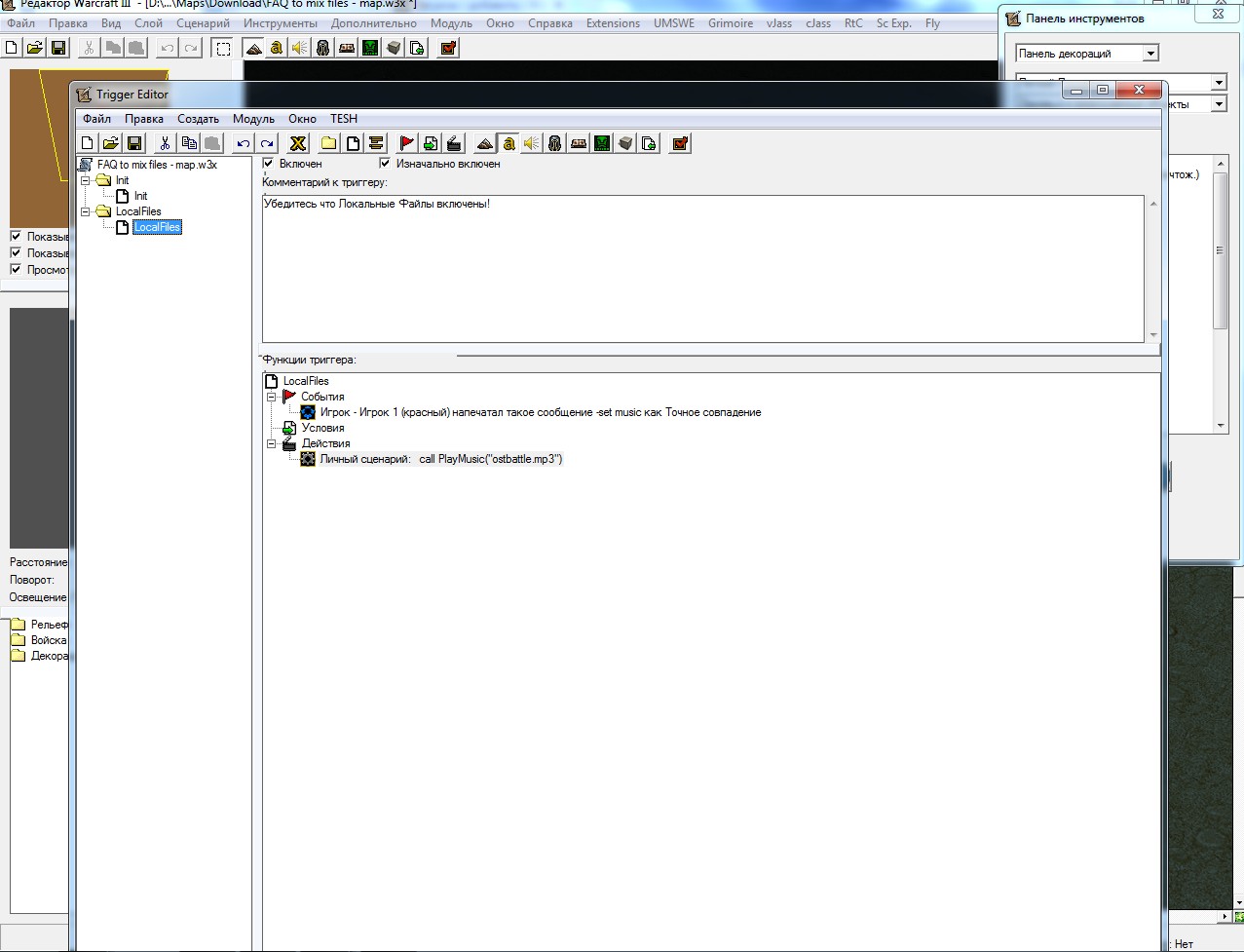 Смотрите, всё по папкам в архиве закинул. Для музыки своя папка, для текстур своя и для моделей своя. Сохранил, закинул микс архив варик. Открыл редактор, триггером личный сценарий попробывал проиграть музыку которая была в миксе, не получилась. Дальше, указал модель в редакторе обьектов. Не в редакторе, не в игре не видно модели. Что делать? Может кто подробно объяснить как правильно сувать в миксы музыку, текстуры, модели и т.д. И потом всё это использовать в редакторе?