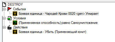 Помогите сделать спелл самоуничтожение. Чтобы к примеру юнит или здание при нажатии на данный спелл умирали или уничтожались.