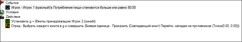 в итоге у тебя побегут в бой даже рабочие, и триггер сработает только тогда, когда будет меняться потребление пищи