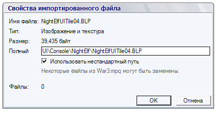 Вообщем я нашел подходящий интерфейс, ПРАВИЛЬНО импортировал - он работает, кроме одной части. Название не работающего файла: NightElfUITile04.BLP, то есть 4 часть интерфейса.