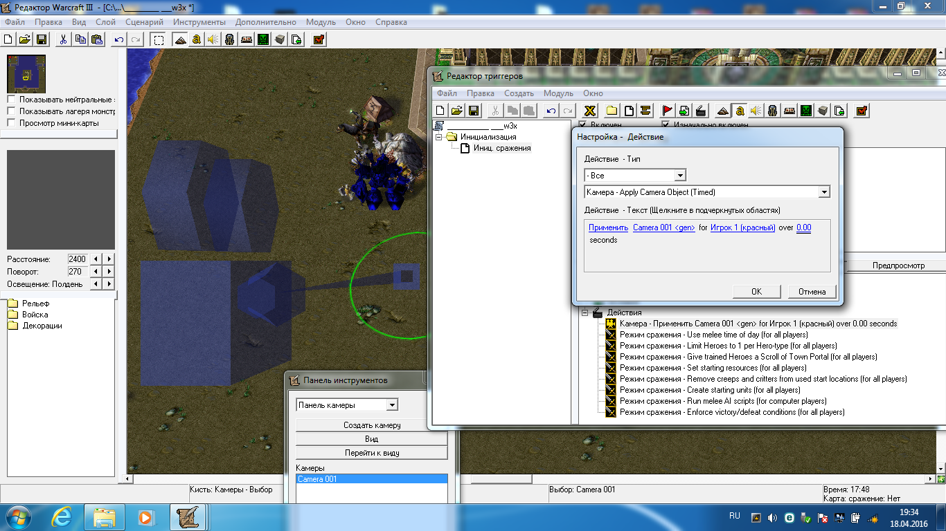 По инструкции создал камеру, с подъемом, как хотел. В триггерах все замутил, зашел в игру проверить, на старте карта с тем подъемом, как я и устанавливал. Прокручивал карту, все норм. НО, как только я поворачивал камеру влево/право или приближал ее, она опускалась, и уже не поднималась на ту (заданную мной) высоту. Становилась как бы обычной (стандартной) камерой. Посмотрите пожалуйста на скрин, может где что не так поставил или еще что?