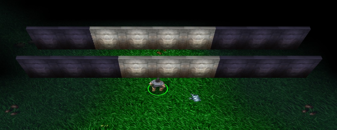 Очень важно сделать стены непрозрачными, примерно на таком расстоянии друг от друга (не дальше). Ведь если видеть сквозь стены - будут раскрыты тайники, да и юнит дальнего боя может атаковать насквозь, что ужасно отразится на балансе игры.