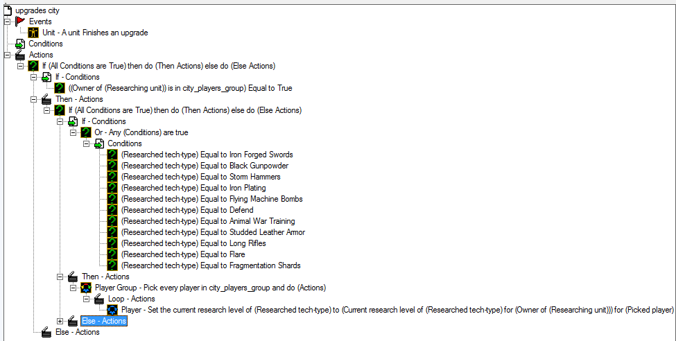 суть триггера в том, что когда один из игроков исследует какую-либо технологию, остальные автоматом получают этот уровень исследования