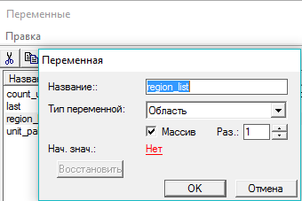 есть переменная region_list (Область-массив).