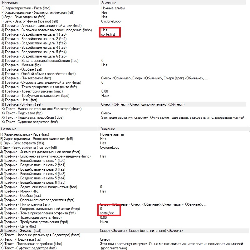 Следовательно, чтобы сделать, то что мне нужно потребуется отредактировать модель, но к модельке вернёмся позже, в РО у смерча 2 заклинания-эффекта это 'Bcyc' и 'Bcy2', вот их скриншоты: