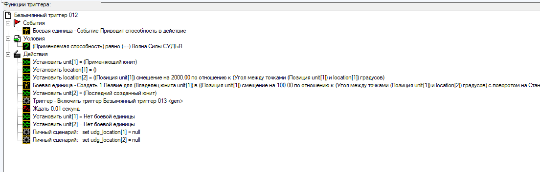 Пытаюсь создать триггерный скилл, но используя локальные переменные, дабы избежать конфликтов с многократными использованием. Скилл работает так: герой выпускает сюрикен, который летит по прямой и достигнут определенной точки, исчезает. Урон скиллу я пока не добавлял, так как для начала мне следует понять как именно расставлять локальные переменные.