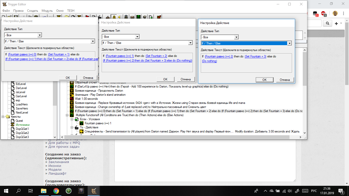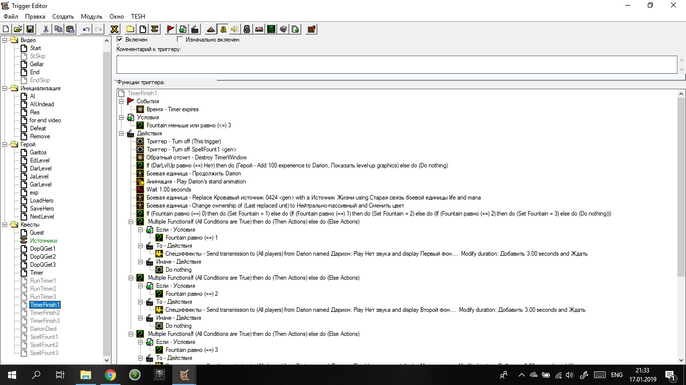 Беда в том, что триггер выполняется абсолютно весь. Окно таймера сворачивается, анимации пропадают, юнит, который должен замениться, заменяется и т.д. Всё работает. Кроме увеличения переменной Fountain на 1. Мной было использовано 3 различных способа.