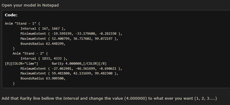 в обоих вариантах в WE и игре вообще пропали анимации кроме Stand и Death