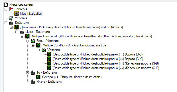Я делаю пак из 200+ карт с переносом триггеров и прочей инфы. Задумка в том, что если среди игроков есть хоть 1 компьютер, для баланса на карте должны быть открыты все двери. Проблема в том что невозможно стандартными триггерами отследить все двери. Если просто открыть все декорации на карте, то все 100% деревьев будут повалены и игроки не смогут добывать ресурсы.
