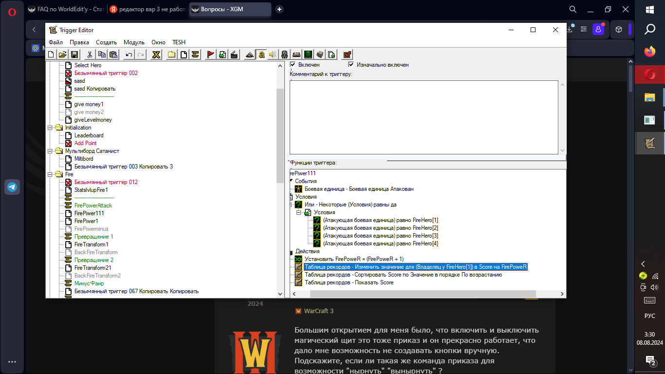 Проверяешь разных героев а устанавливаешь только для 1. А тебя точно есть 1 герой? Тестил что триггер этот запускается и условия проходят?