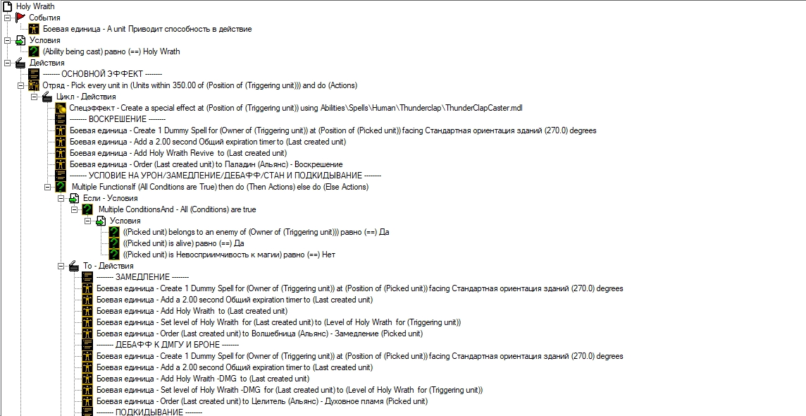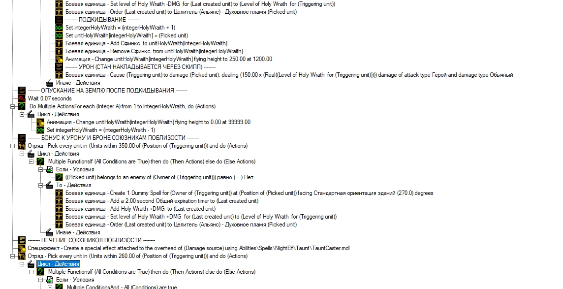 Скилл: герой через 1с. станит врагов, наносит урон, замедляет, лечит союзников поблизости, воскрешает мертвых друзей, накладывает дебафф к урону врагам и бафф урона и защиты друзьям, подкидывает в воздух. Почему-то через несколько применений происходит нечто странное (видео). Как исправить?