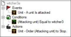 Попробуй вместо event'а unit attaked использовать unit issue order (attack, smart) и его отменять.