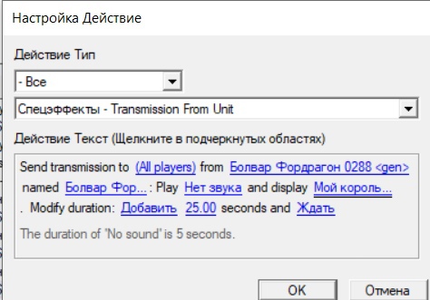 Уже много раз сталкивался с проблемой, что длинную реплику юнита внутри одного "Спецэффекты - Transmission from unit" писать нет смысла, потому что в ролике оно пропадает быстрее, чем успеваешь дочитать. Долгое время избегал проблемы или короткими репликами, или разбиением большой на несколько, добавляя их в разные действия, идущие подряд.
