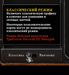 К сожалению, довелось столкнуться со следующей проблемой: при переходе в меню в раздел "Графика" и попытке ее переключения на Reforged всплывает прикрепленное окно.