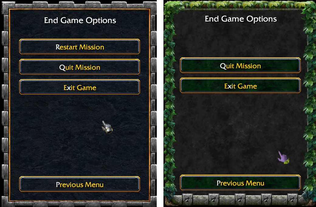 Или еще как вариант выключить ее. BlzFrameSetEnable(BlzGetFrameByName("RestartButton",0), false). Тогда она просто станет серенькой неактивной.