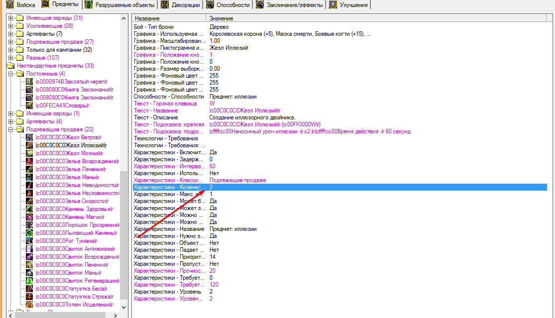 Я захотел проверить изменения патча на кастомной карте и выложил жезл иллюзий. В игре у него 3 заряда, хотя в редакторе написано 2 заряда. Как поставить именно 2 заряда?