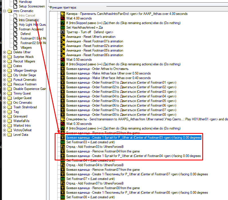 2. Выделяешь старого юнита, заходишь в "Дополнительно" -> "Заменить войска", там указываешь старый тип юнита (пехотинец) и новый тип юнита (бугай), обязательно ставим в этом случае галочку "Только выбранные войска", жмем "Окей", готово. В триггерах менять ничего не придется ибо уже будет заменен юнит а ссылка на него останется та-же.