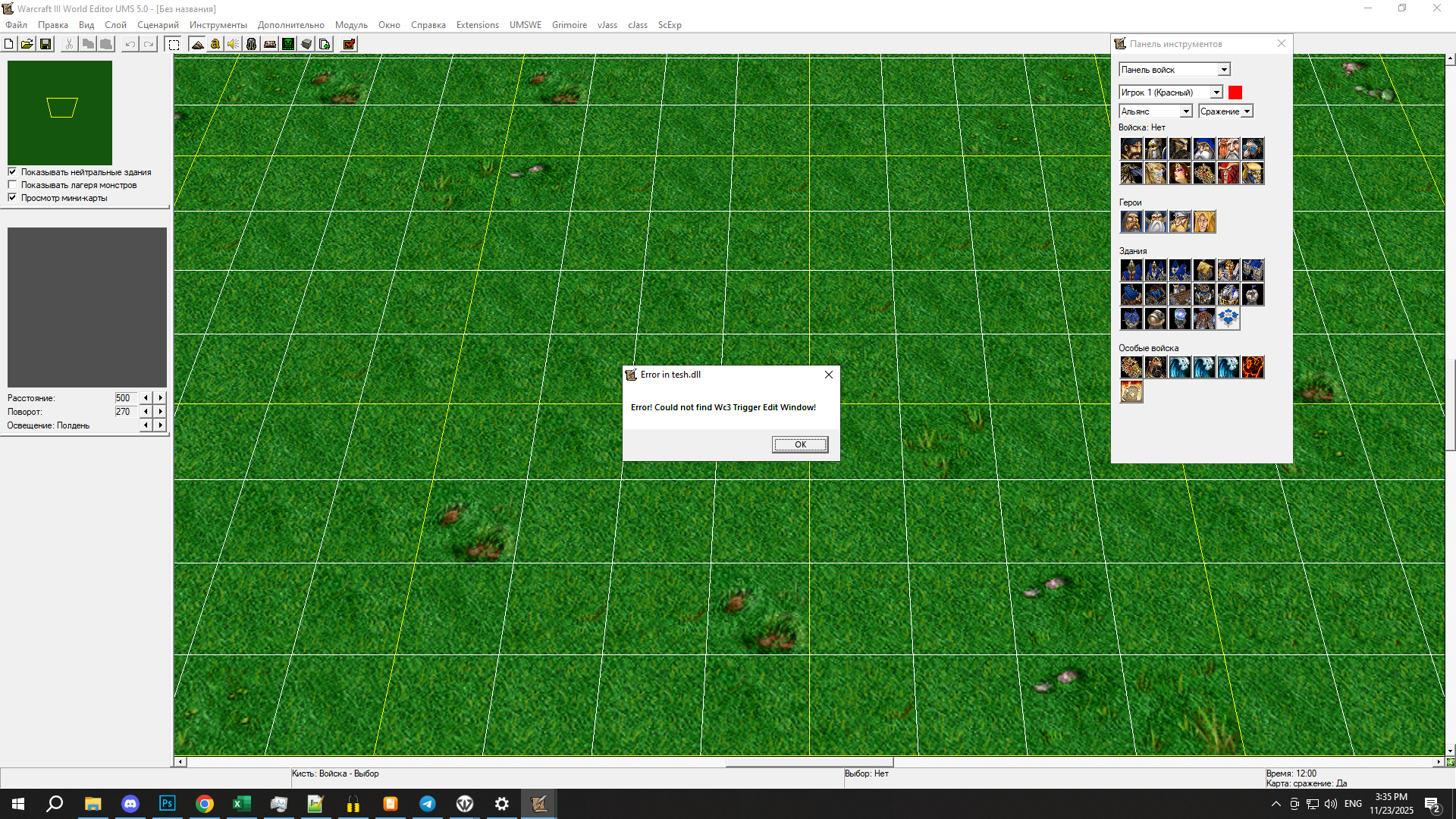 Ошибка возникает не зависимо от текущей открытой в редакторе карты, будь то новая чистая карта, моя старая карта или рандомная карта из интернета