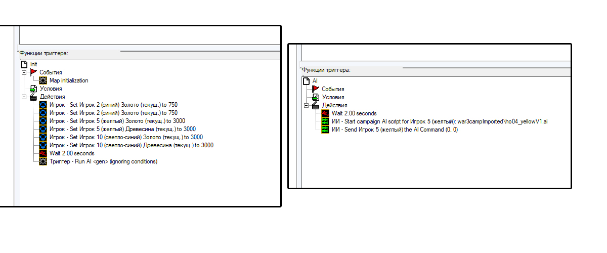 Скрины триггеров ниже, сама карта и файл ИИ так же прилагаются. Проверял на картах самих близзов - они активируют ИИ ровно таким же образом