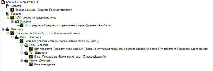 триггер должен по очереди проверить номер ячейки и если в ячейке лежит подобранный предмет