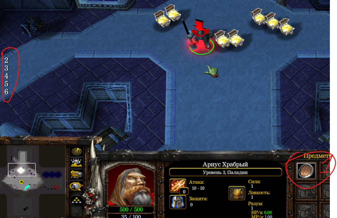 заметь - предмет лежит в первой ячейке и номер 1 не выводится