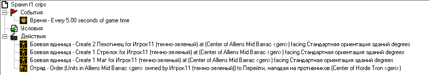 Суть триггера в том что в "Области A", спавнятся определенные боевые единицы и идут в