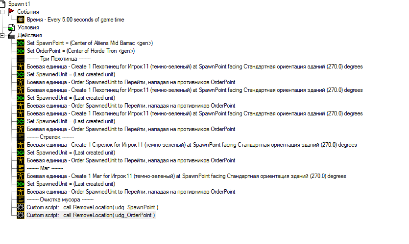 Суть триггера в том что в "Области A", спавнятся определенные боевые единицы и идут в