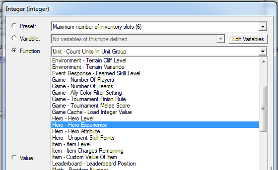 2.Делаем кастомное получение опыта: Создаем целочисленную. При событии юнит умирает пикаем юнитов в радиусе и прибавляем к этой целочисленной опыт либо записываем в хэштаблицу на хэндл героя. Создаем триггер с событием получения предмета и выдаем опыт с сохраненной целочисленной или с ХТ.