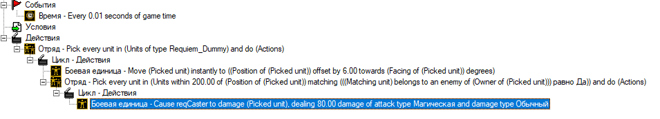 Всем привет! Я делаю способность, которая работает как темная стая дредлорда. Создаю волну, а затем циклом двигаю ее вперед. Но возникли сложности с нанесением урона этой волной. Может очень глупый вопрос, но как наносить урон этой волной один раз, а не циклично?) (на скриншоте показано, как сейчас наносится урон)