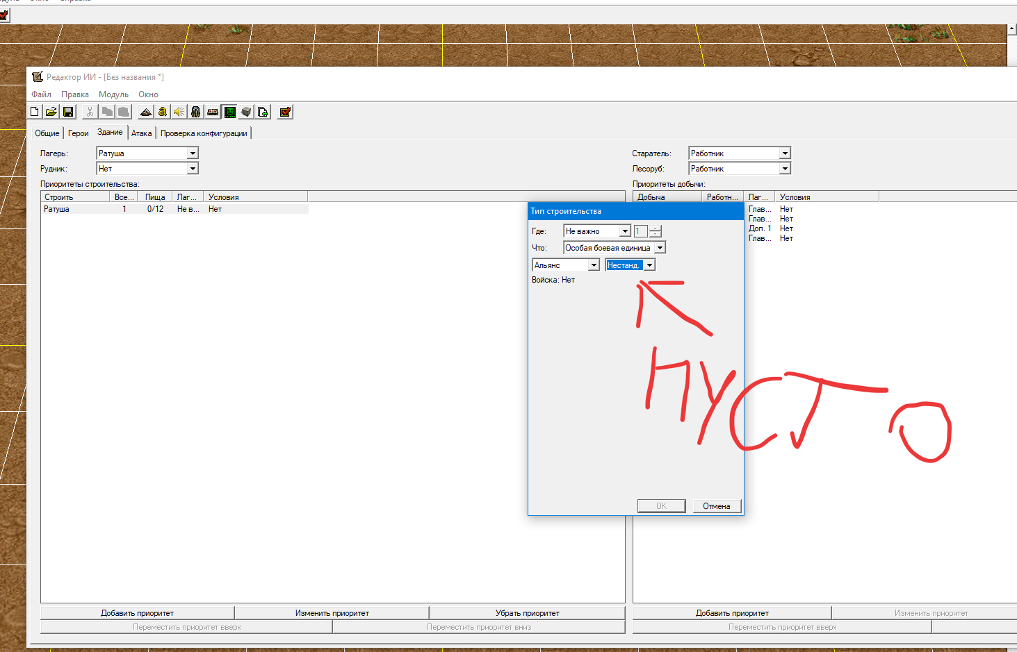 Здравствуйте, в редакторе ИИ в разделе здания, не могу добавить нестандартных юнитов. В редакторе их создал, а там пусто, кто-то знает как исправить это?