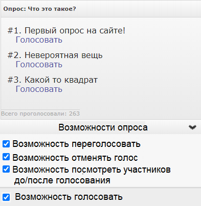 • ! - обозначающий, что вопрос закрыт и можно посмотреть только участников опроса