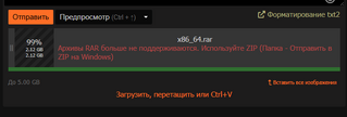 Если rar не поддерживается - зачем грузить большой архив и в конце об этом написать, если можно сразу указать на проблему и не загружать?