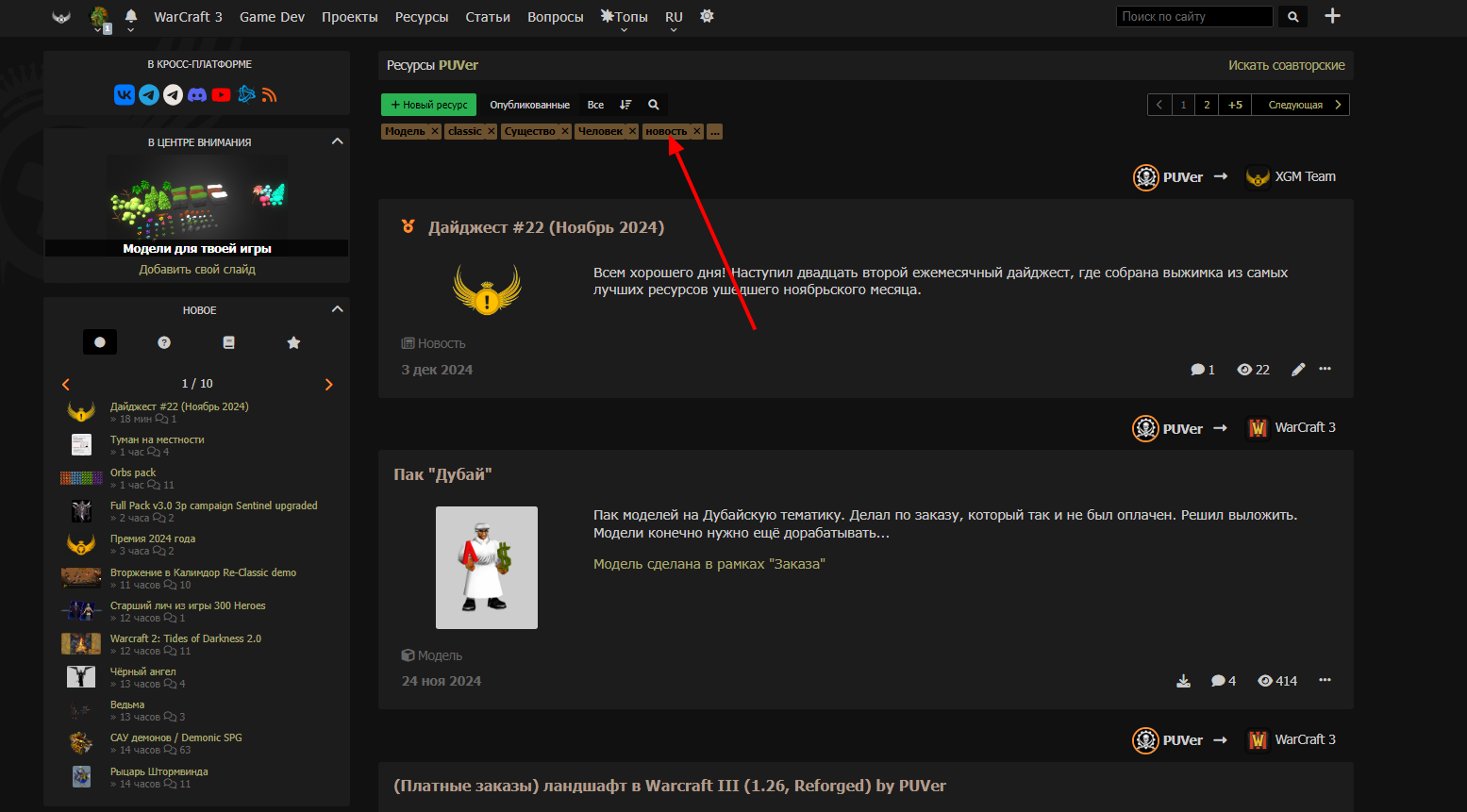 При выборе пользователя хигамы, возьмём в пример Puver, открываем его ресурсы, фильтруем только под новости, нажимаем на следующую страницу и о чудо, фильтр от пользователя что мы выбирали слетает и как же мне дальше смотреть, более старые данные?