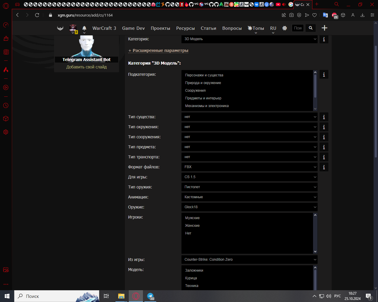 ScorpioT1000, убрать подкатегорию и формат файлов в разделе 3D модель