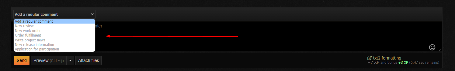 Не знаю так задуманно или нет но при выборе типа коментария (на темной теме) фон у выбора белый - может поменять на темный?