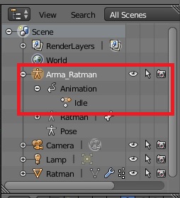 - Выбираешь свою модель. Через append добавляешь нужные анимации.