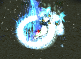 Результат применения: Заливает область вокруг героя ледяными осколками по спирали, начиная от самого героя. Каждый осколок наносит урон тем больше, чем дальше от героя круг, в котором он падает(+150% урона за каждый круг).