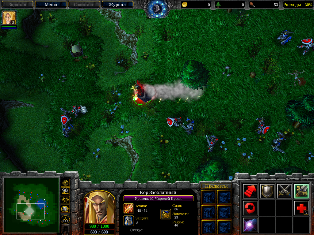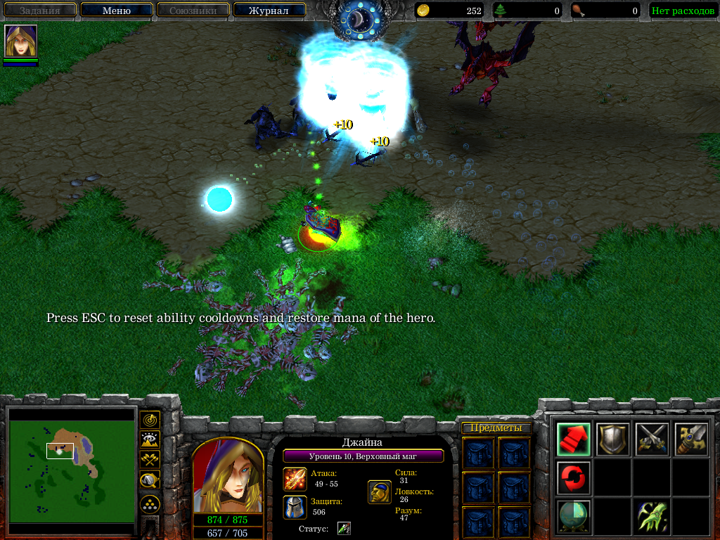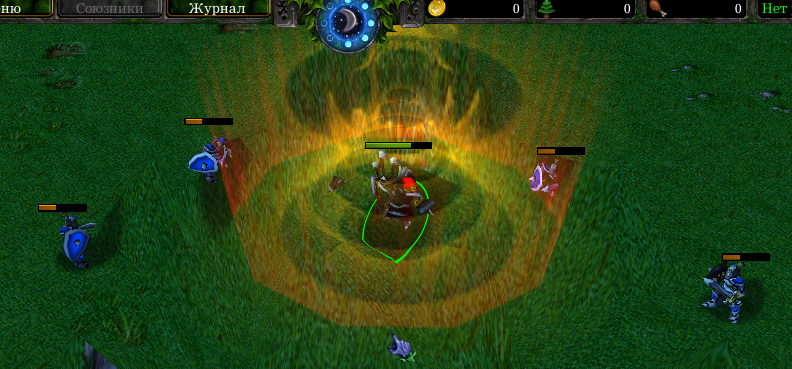 Результат применения: Юнит начинает передвигаться с большой скоростью, нанося урон другим юнитам и вырубая деревья. Юнит остановится, если перед ним будет преграда в виде камня и т.п.