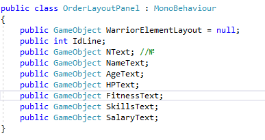 Почему я не могу ничего записать или считать с gameobject WarriorElementLayout класса new OrderLayoutPanel? Знаю, что использую дибильные названия