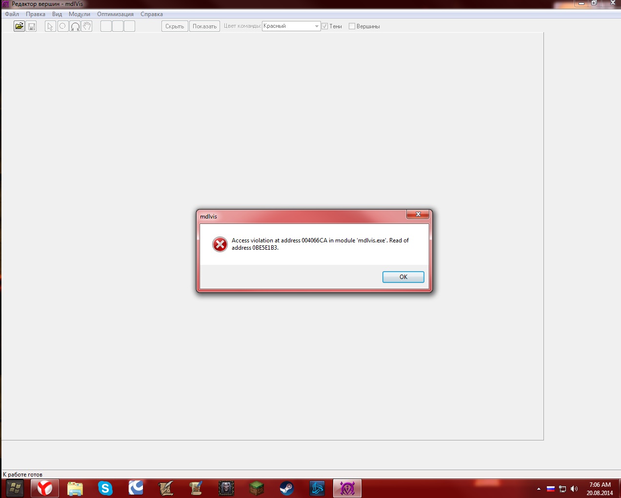 Но вылезает такая ошибка при открытии модели в Mdlvis