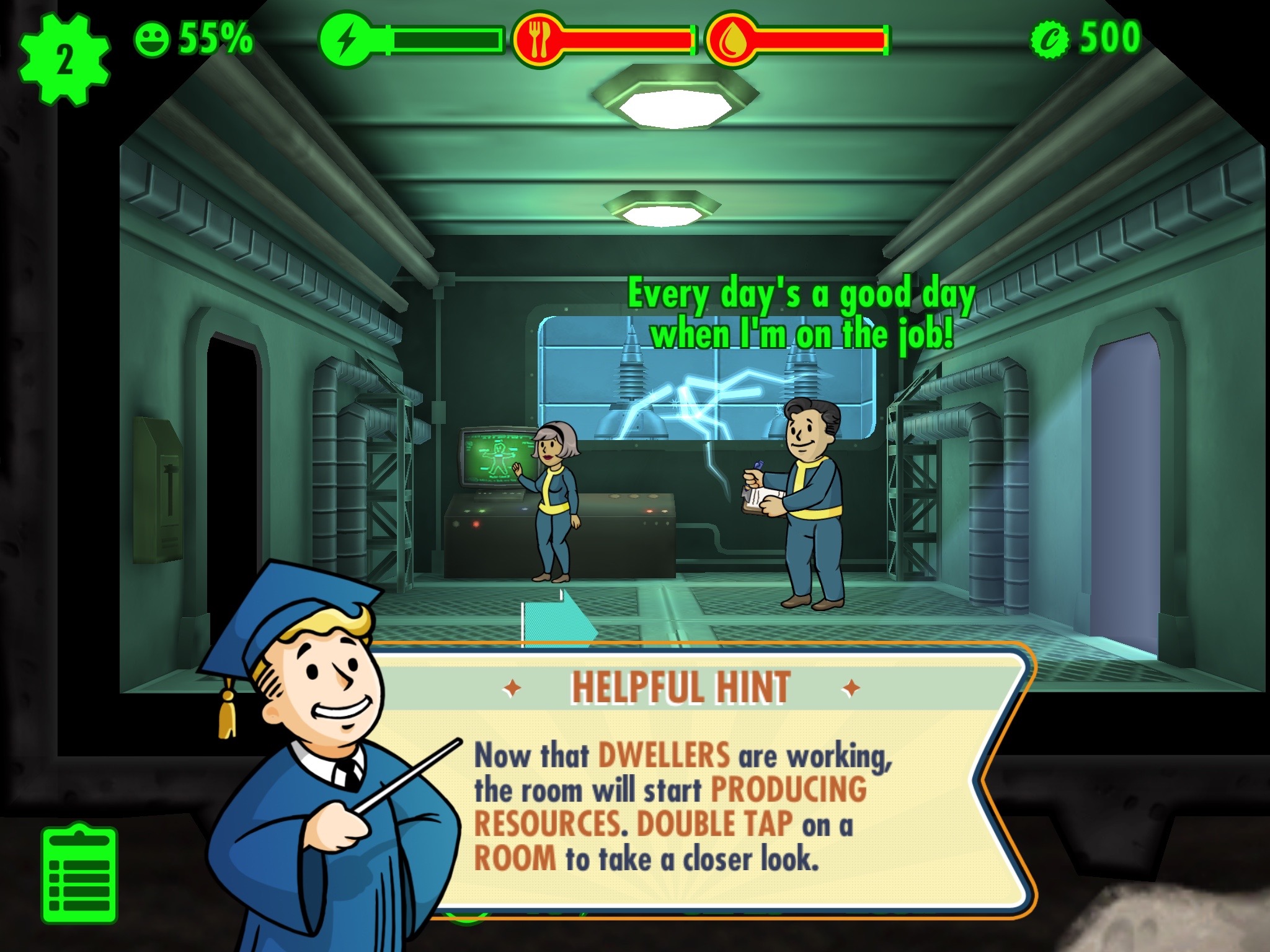 Что самое примечательное, Fallout Shelter — это не совсем стандартный экономический симулятор. При всей бесплатности тут нет постоянно надоедающих таймеров, которые присущи подобным проектам. Также игра не требует постоянного соединения с интернетом. Но встроенные покупки все же имеются.