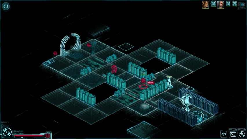 Хакерам же уготованы путешествия по киберпространству, где время течёт в 3 раза медленнее. Подключившись к одному из узлов Матрицы, взломщик ведёт параллельное сражение с защитными системами, используя атакующие программы и спецумения, пока товарищи прикрывают его бренную тушку. Но в Сети тоже можно погибнуть, если напороться на «чёрный лёд», причиняющий физический урон нарушителю. Эх, почему не разрешили свободно гулять хотя бы по серверам…