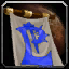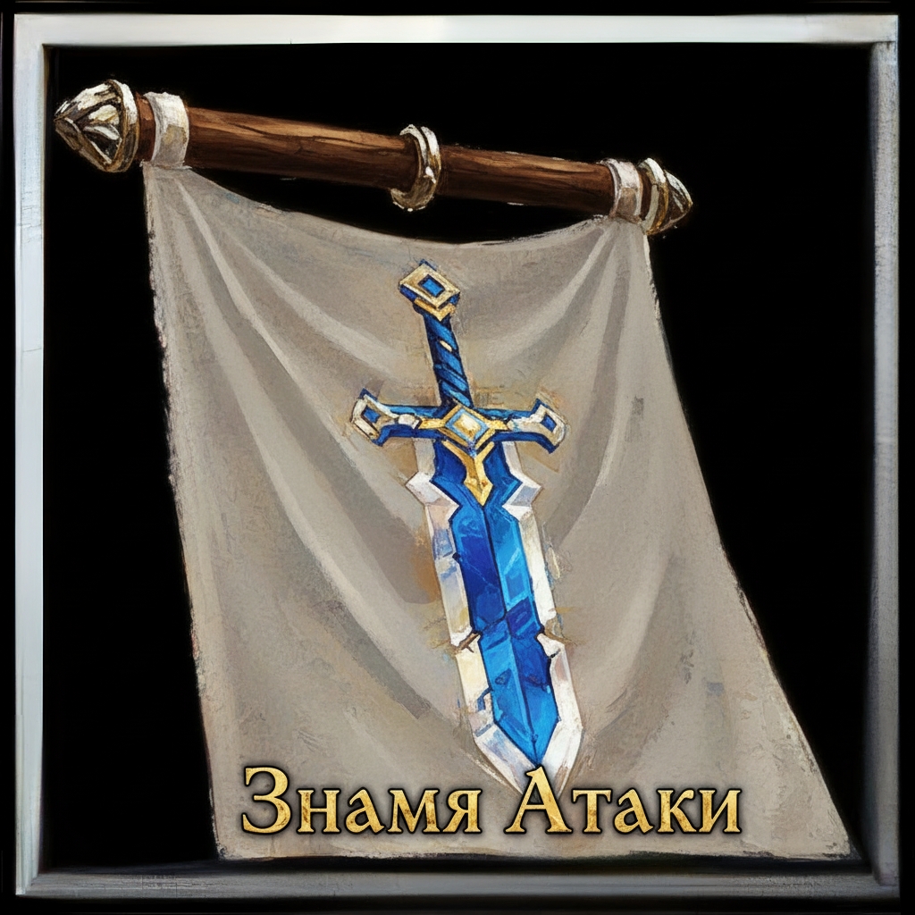 Это иконка знамени, увеличенное с помощью нейросети, при этом изображение искаженно. Переделай деревянную часть сверху и замени логотип на полотне знамени на меч, это должно быть Знамя Атаки. Т.е. нужно изобразить меч на полотне. Стиль тот же что тут - WoW.