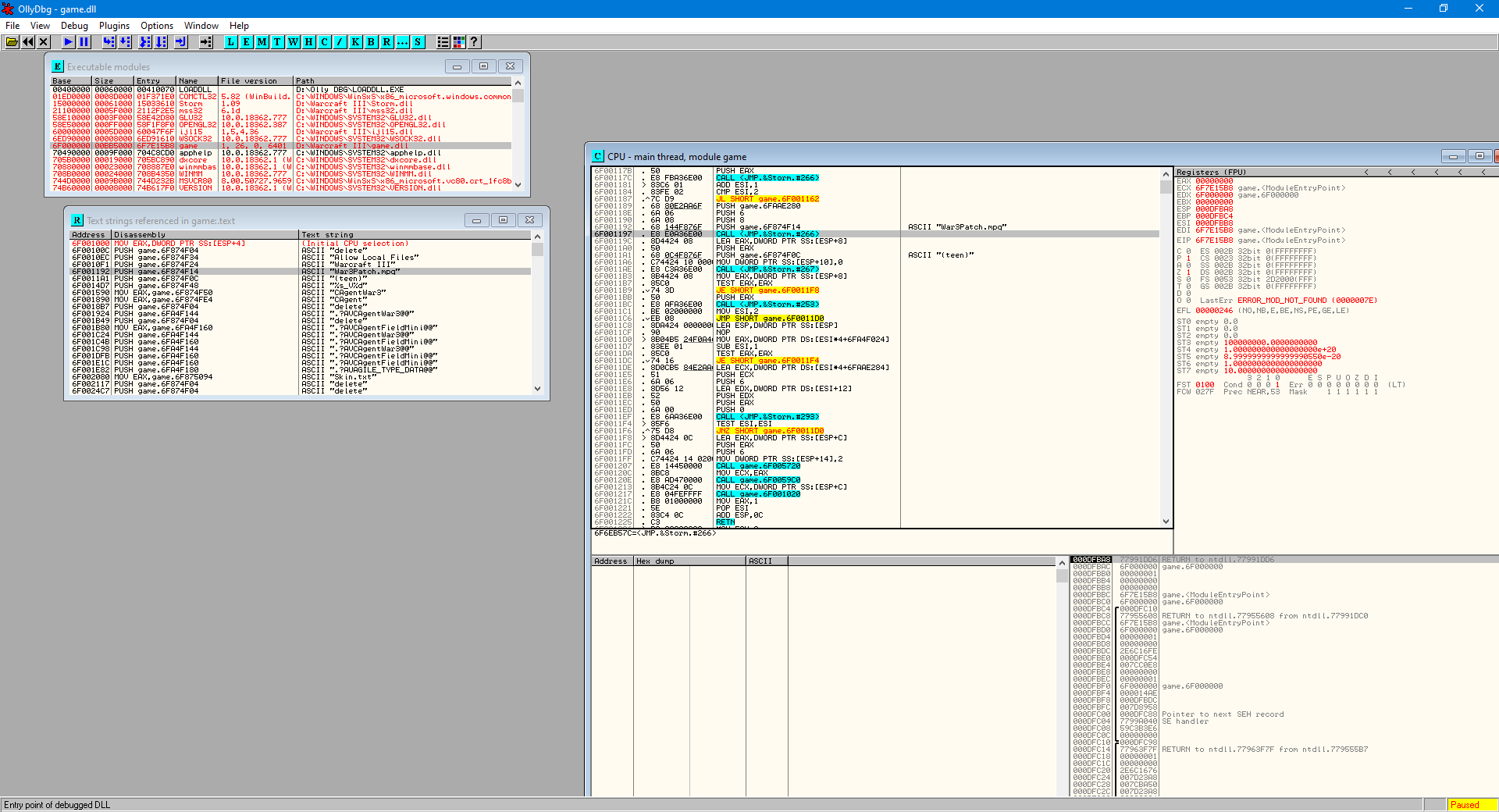 Для примера, возьмём то, что я хочу подгрузить к WC3 свой mpq, для этого я нахожу функцию, зная, что в одном из случаев она подгружает war3patch.mpq