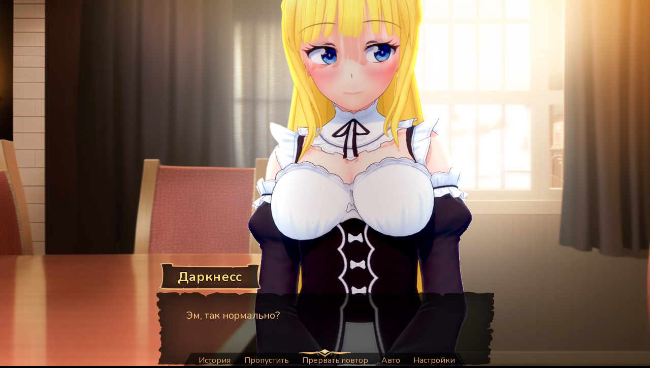 Очень давно хотел попробовать поиграть в эту игру, но никак не решался. Пару дней назад всё-таки скачал её, потому что надоело рассматривать хентай-новеллы, где либо нет русского перевода, либо он сделан частично (в процессе или вовсе заброшен). Я смотрел аниме «Коносуба», где главный герой пытается выжить в новом мире, разбогатеть, обрести власть и громкое имя. Ну и, само собой, охмурить девушек.