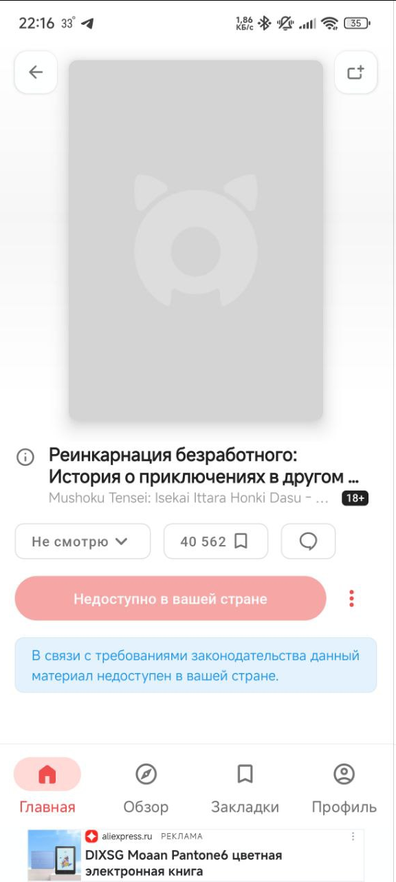 Приложение убрало возможность смотреть аниме «Реинкарнация безработного: История о приключениях в другом мире» на территории РФ.