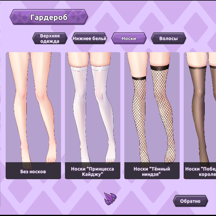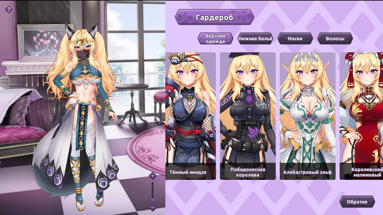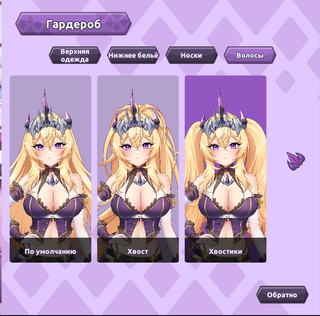 Здесь мы можем менять нашу госпожу принцессу Дайну. Прическу, нижнее белье, наряд и чулочки.