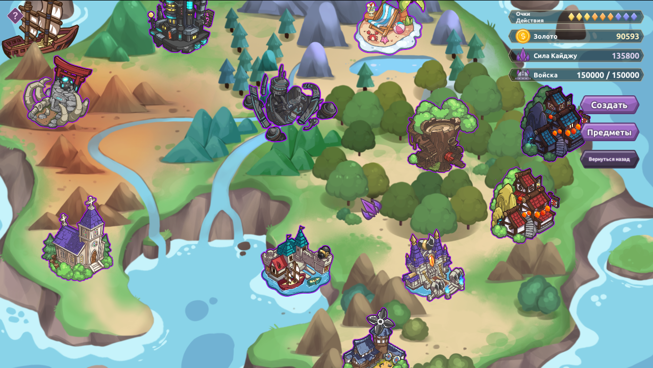 Нужно нам захватить эти места по ходу сюжета - деревня наёмных ниндзя, автономная зона для деловых поездок, город гурманов, город истинных гурманов, божественный лес, парящая крепость, племя орков, Эвербрайт.