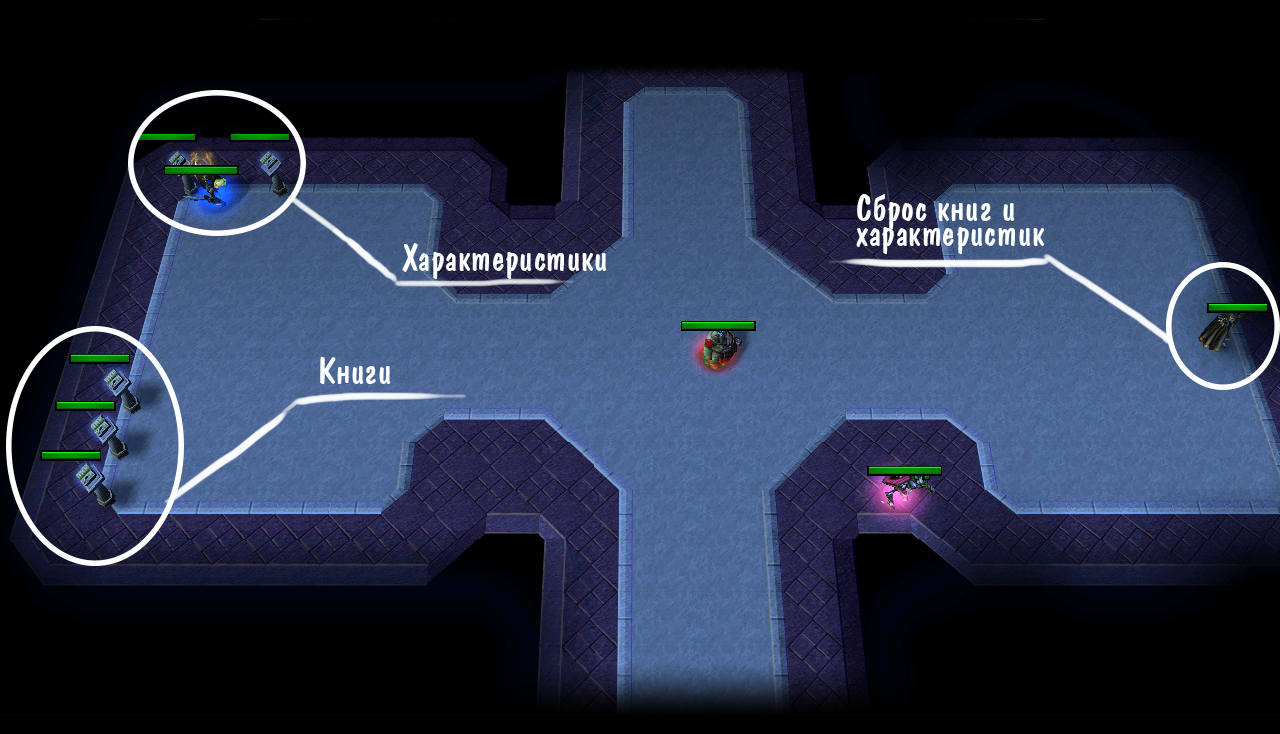 Ниже их находятся пьедесталы с книгами способностей. Книги покупаются за кулаки идиотов.